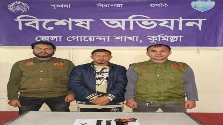 কুমিল্লায় ডিবির পুলিশের অভিযানে বিদেশি পিস্তলসহ তালিকাভুক্ত মাদক ব্যবসায়ী গ্রেপ্তার