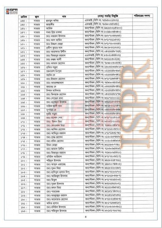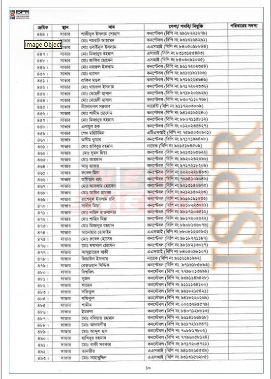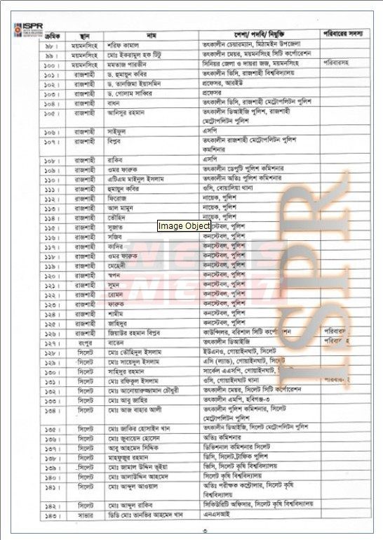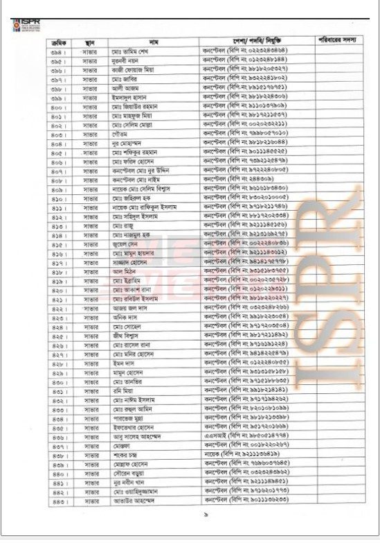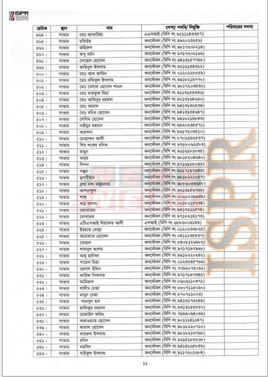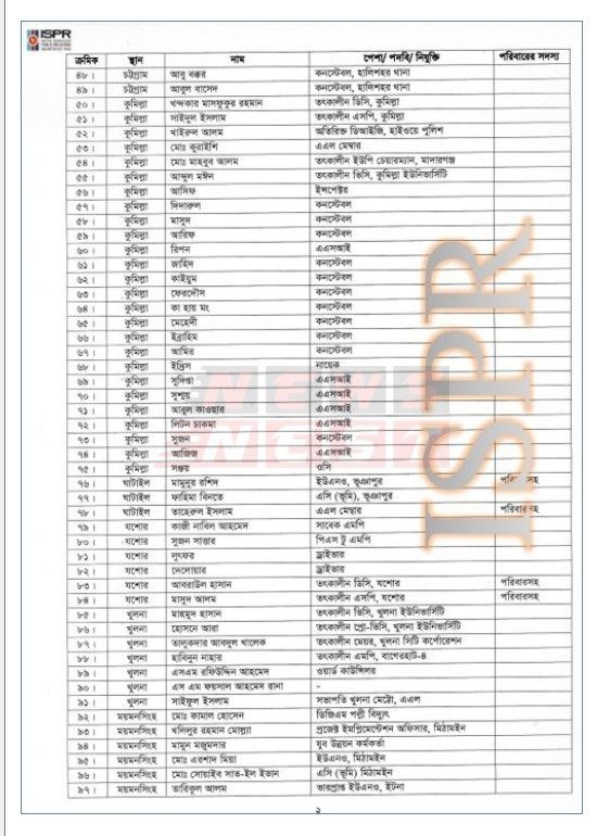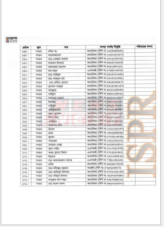 আইএসপিআর থেকে ৫৭৮ জনের লিস্ট প্রকাশ করলো বাংলাদেশ সেনাবাহীনি