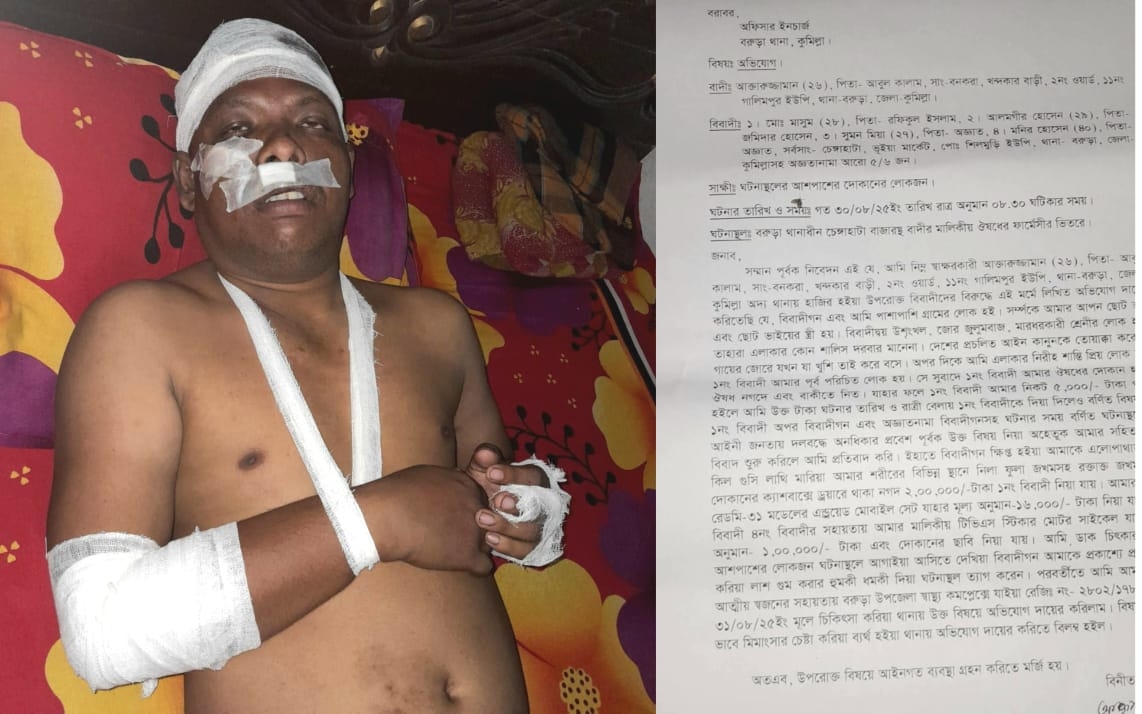 এছাড়া হামলাকারীরা দোকানের চাবিও ছিনিয়ে নেয় এবং প্রকাশ্যে হত্যার হুমকি দিয়ে ঘটনাস্থল ত্যাগ করে। আশপাশের দোকানদার ও স্থানীয়রা ছুটে এসে তাকে উদ্ধার করে হাসপাতালে নিয়ে যান।